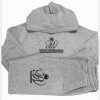 Gray crop top and sweatpants 65% cotton and 35% polyester.